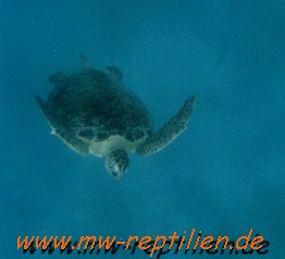 Unterwasseraufnahmen einer Suppenschildkröte (Chelonia